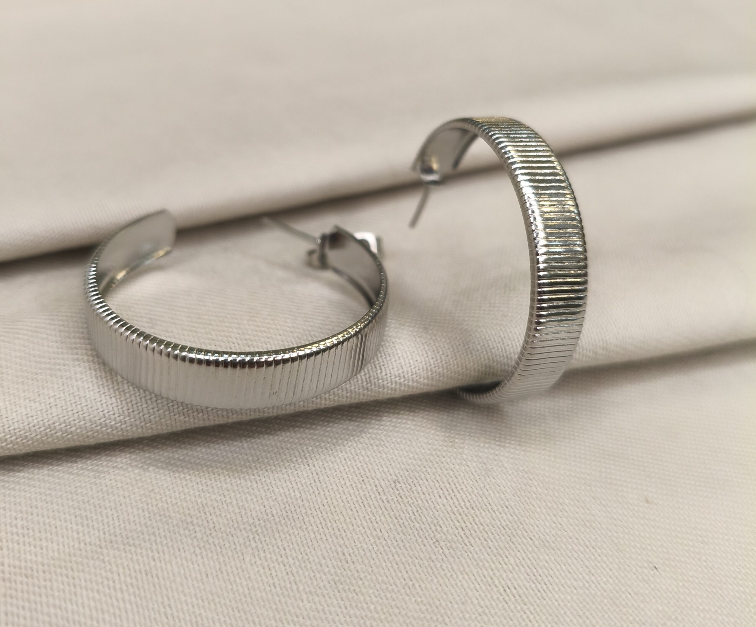 Brinco Argola Texturizada Grande em Aço Cirúrgico Prata – LILLARA SEMIJOIAS