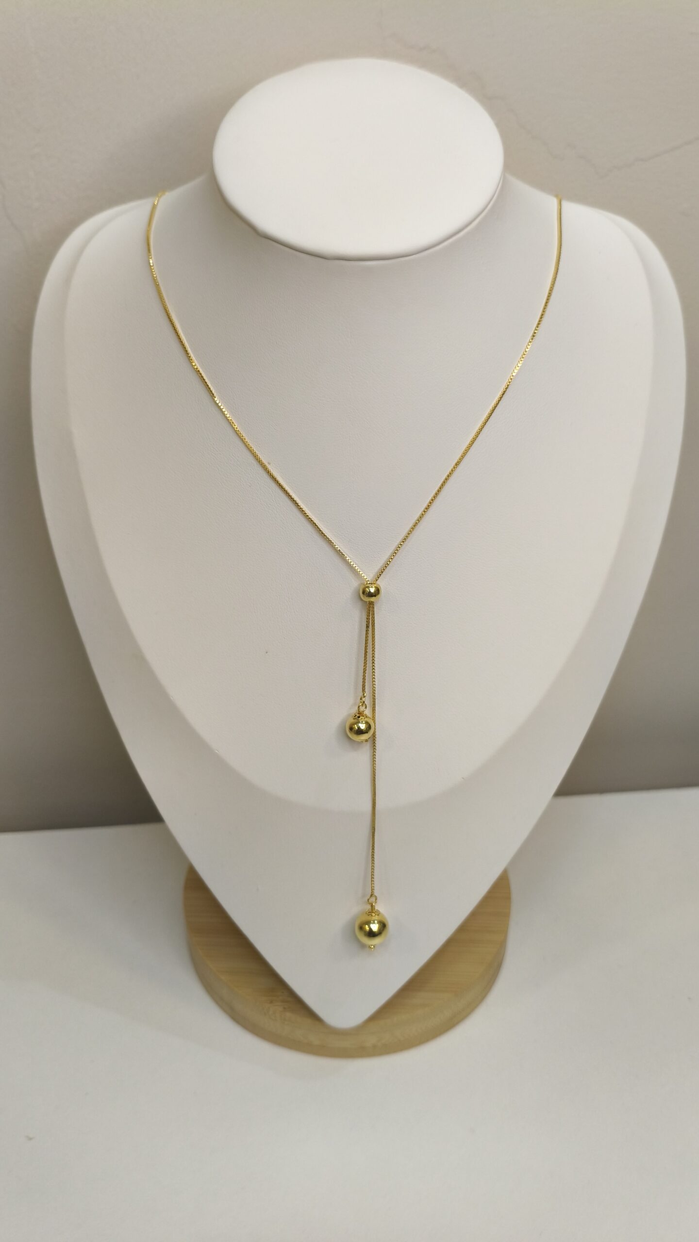 Colar Gravata com Bolas Duplas Banho de Ouro – LILLARA SEMIJOIAS