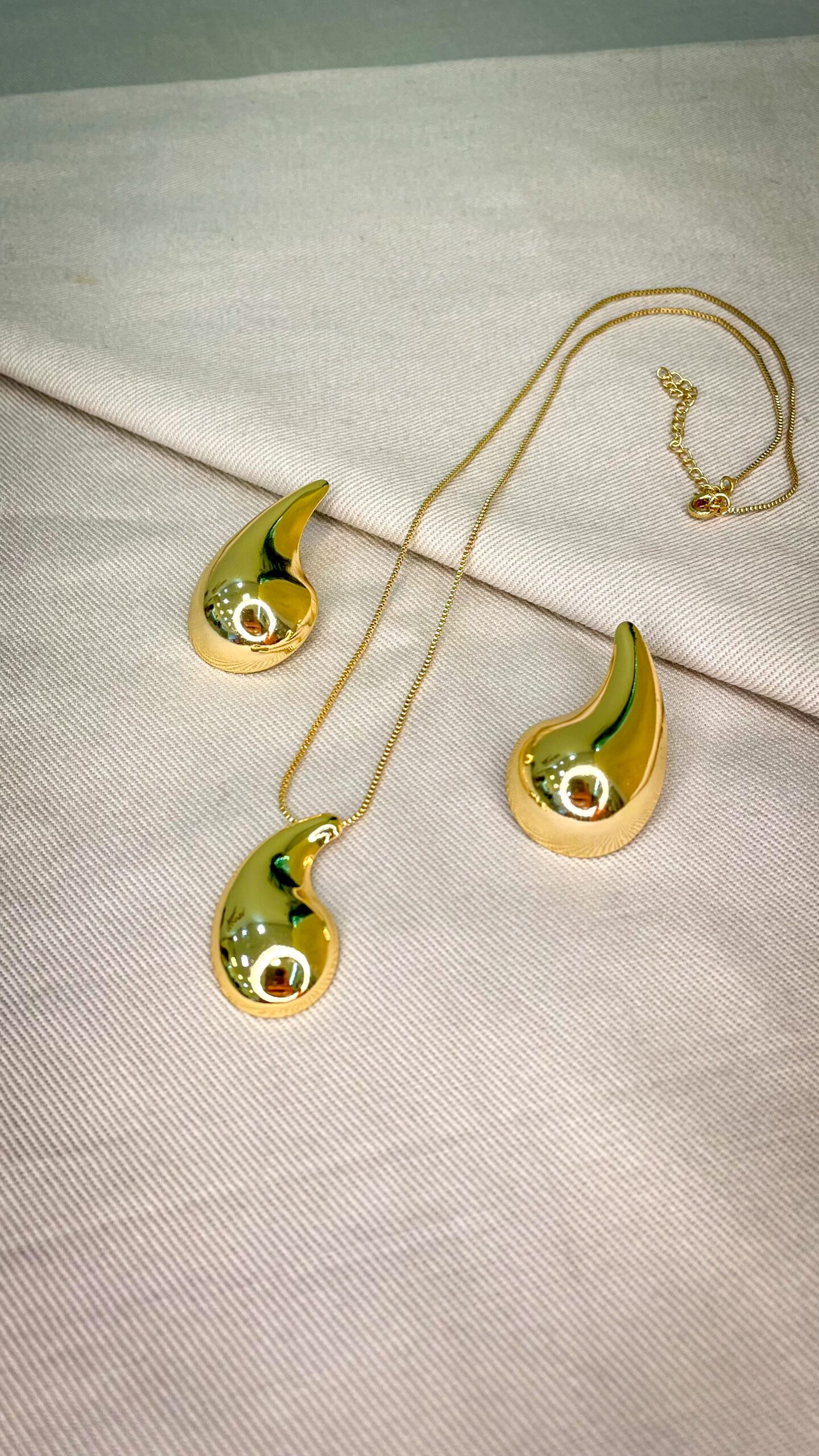 / Conjunto Semijoia Dourado Colar e Brinco Gota Orgânica -LILLARA SEMIJOIAS